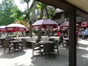 Outside, if you go through the souvenir store, you will find a courtyard where you can eat outside at tables shaded by umbrellas. You can browse through some displays set up and read about some of the old flour grinders and equipment from yesteryear. Public restrooms are right around the corner.